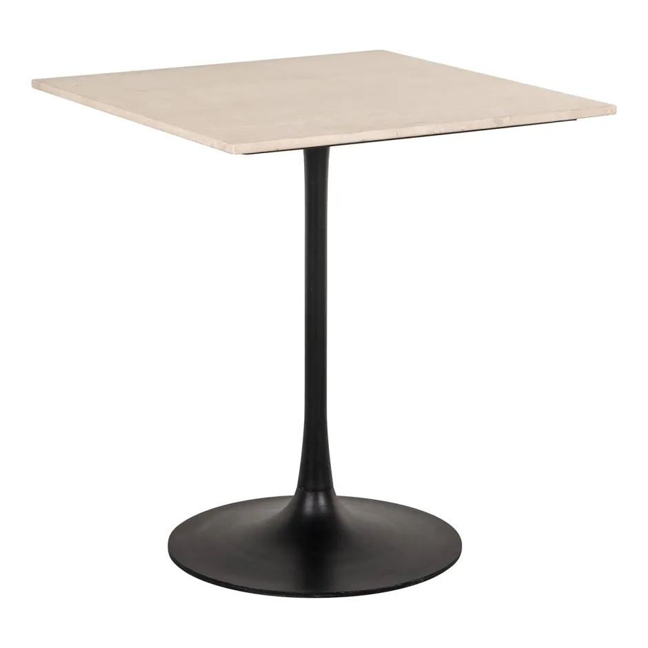 Deze stijlvolle bistrotafel combineert de verfijning van marmer met de stevigheid van ijzer. Het vierkante tafelblad, gemaakt van hoogwaardig marmer, straalt luxe uit en biedt een duurzaam oppervlak dat perfect is voor zowel eet- als leefruimtes. De slanke, zwarte ijzeren voet biedt een solide basis en voegt een modern contrast toe aan het marmeren blad. De Tavolo bistrotafel is een ideale keuze voor wie op zoek is naar een combinatie van functionaliteit en esthetiek in een compact formaat, perfect voor cafés, keukens of kleinere eetruimtes.