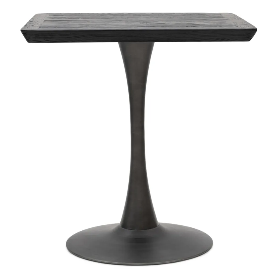 De vierkante Sherwood Bistro Tafel kun je eigenlijk overal wel kwijt. In de keuken, in een niet te grote woonkamer, je vindt er vast een plekje voor. Deze robuuste, strakke tafel is gemaakt van gerecycled eikenhout en een metalen poot.