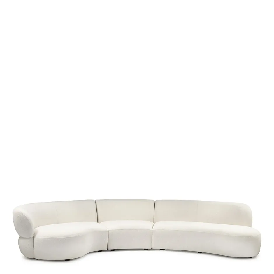 Dare to be bold, creëer met de modulaire San Remo 3.5 zits Bank met de armleuning rechts. Bestaande uit een lounger, center en een corner. Het design van deze sofa is bedacht en ontworpen in samenwerking met Anna Nooshin. Deze rijke Bouclé stof in de kleur Simply White geeft de bank een moderne look en de organische vormen van de elementen maken dit een uniek design! Lounge en leef comfortabel en met de fauteuil en voetstoel te combineren maakt dit de chique look compleet. *Ook verkrijgbaar in de kleur Natural Grey