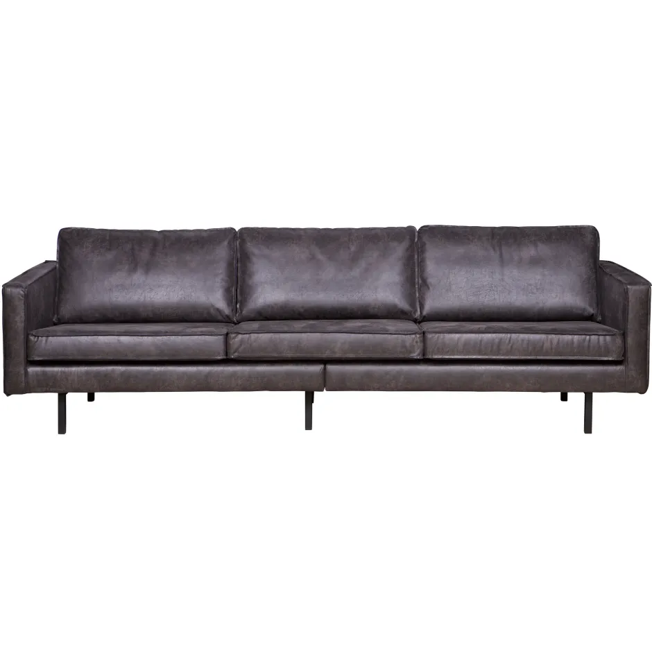 De Rodeo 3-zits bank heeft een totale hoogte van 85 cm, breedte van 277 cm en diepte van 86 cm. De zithoogte is 45 cm en een zitdiepte van 60 cm zorgt voor een fijn ondersteunende zit. De zitbreedte van deze 3-zitter bedraagt 253 cm en is verdeeld in drie losse zit- en rugkussens. De armleuningen hebben een breedte van 12 cm en een hoogte van 68 cm, gemeten vanaf de vloer. De metalen poten zijn 20 cm hoog. De bank kan 250 kg dragen, wanneer gelijkmatig verdeeld.