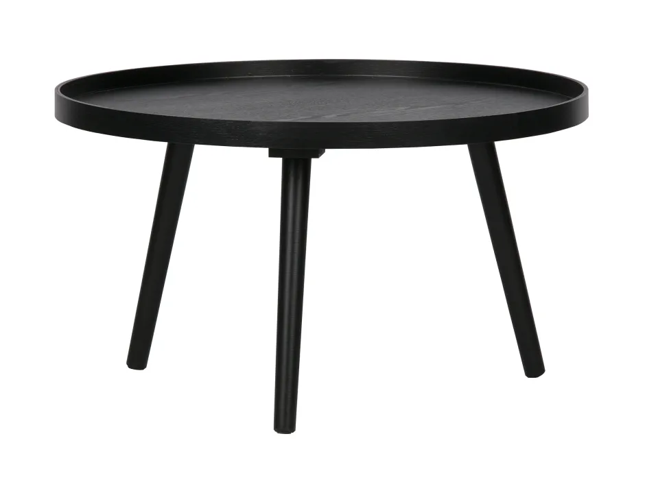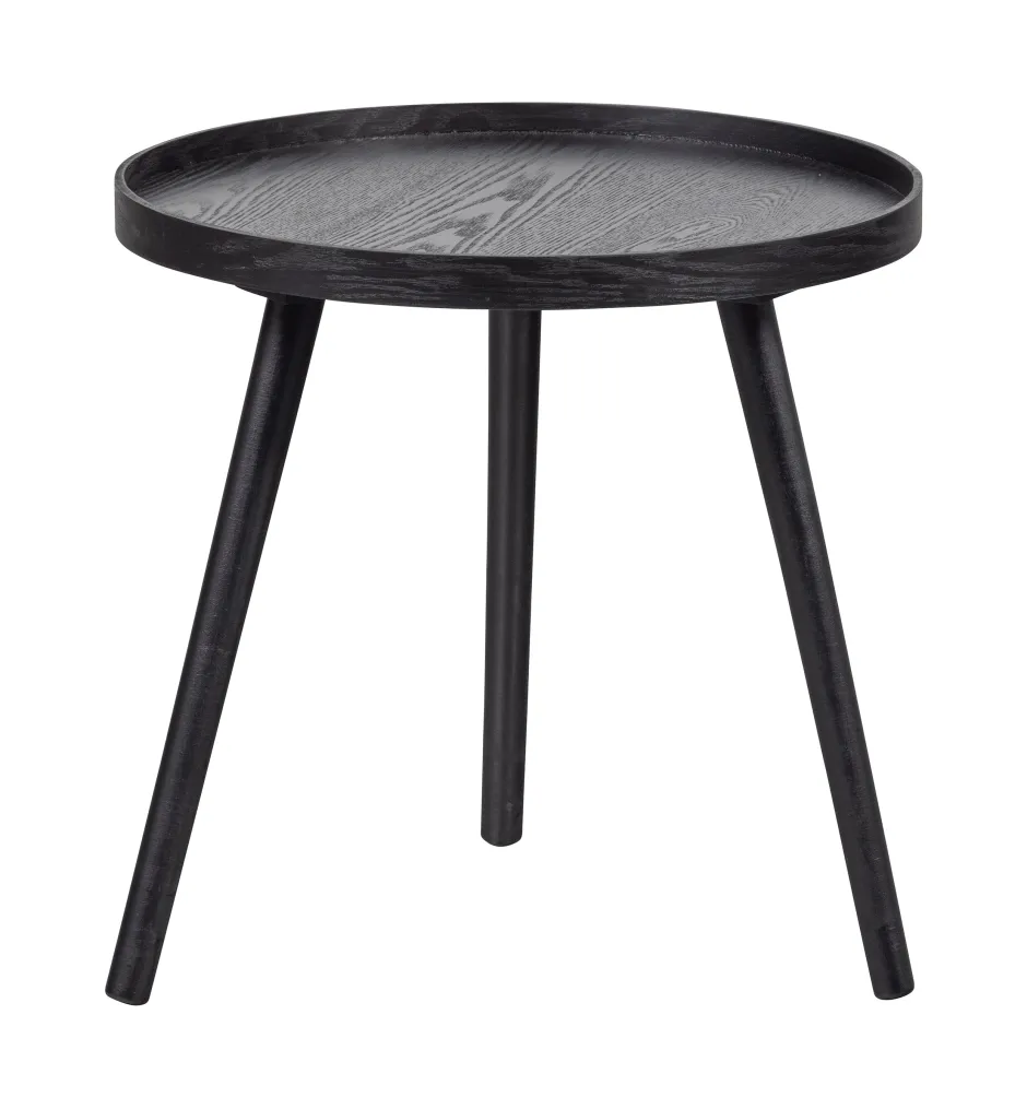 Met de Mesa bijzettafel van het Nederlandse merk WOOOD haal je een tijdloos item in huis. Mesa is vervaardigd uit massief grenenhout met een matzwarte aflak. De tafelrand heeft een dikte van 3 cm en staat iets hoger dan het tafelblad. De drie poten lopen iets uit, wat zorgt voor een stabiele stand.