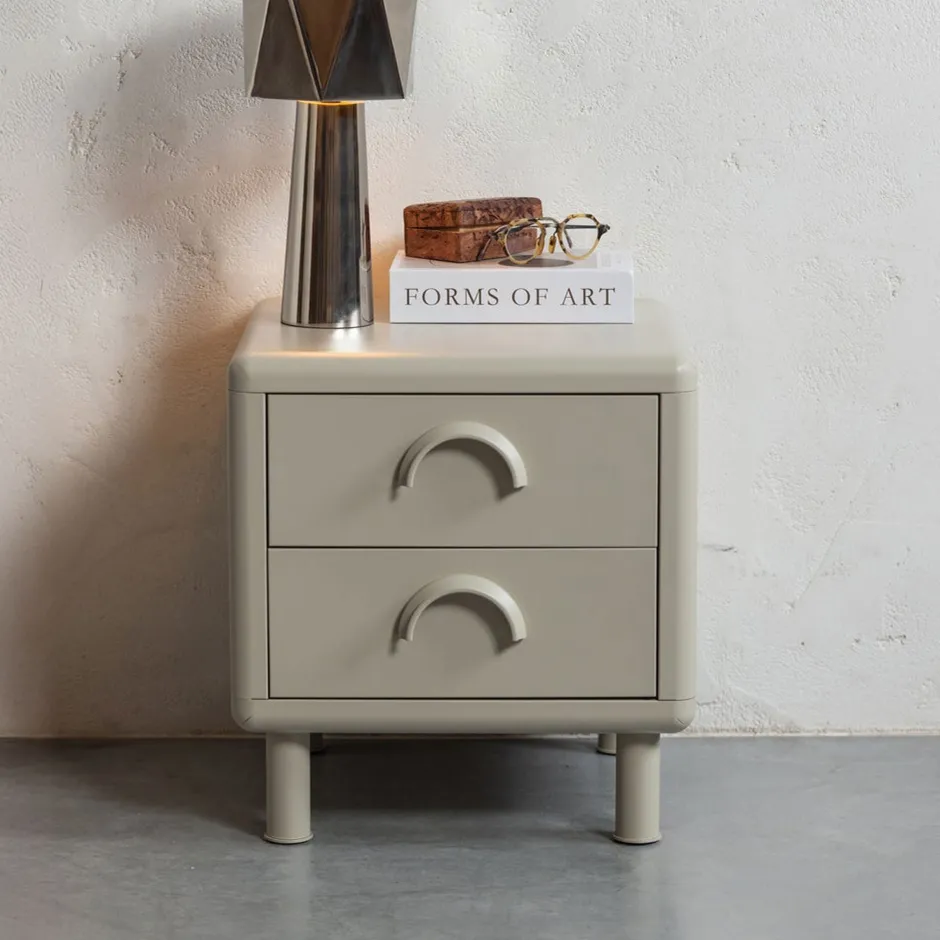 Rune is een opvallend ladekastje met een retro design uit de collectie van het Nederlandse merk WOOOD. Dit speelse opbergertje is uitgerust met twee lades, elk voorzien van een boogvormige handgreep. Rune biedt genoeg ruimte om diverse spullen netjes en uit het zicht op te bergen, waardoor het niet alleen praktisch is als nachtkastje, maar ook uitstekend dienst doet als compacte ladekast in andere ruimtes.