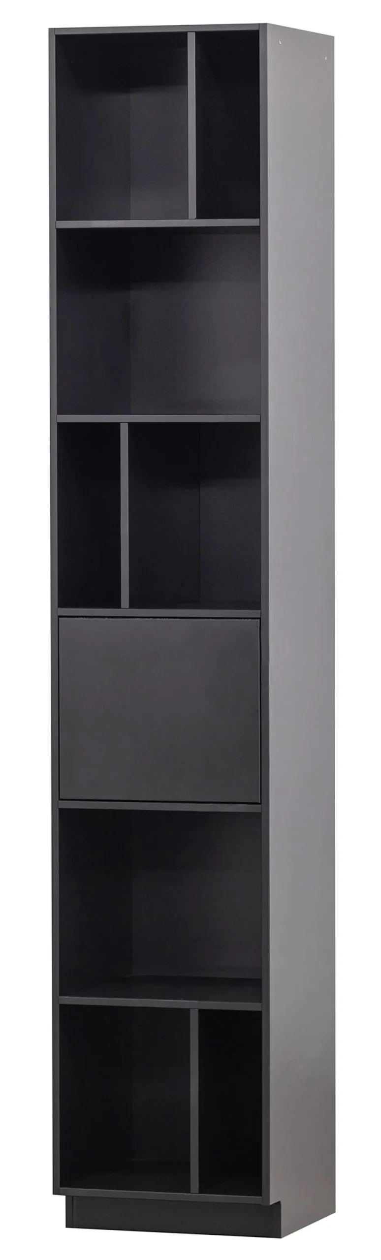 De Finca open vakkenkast is een waar pronkstuk in de woonruimte. De open vakken zijn speels ingedeeld voor het presenteren van jouw mooiste woondecoratie. Het deurtje houdt nog eens een ruime opbergruimte uit het zicht. De vakken hebben verschillende breedtematen en elk een diepte van 37 cm. De onderrand van de vakkenkast laat 7 cm ruimte over aan de voorzijde, hierdoor lijkt het meubel te zweven.