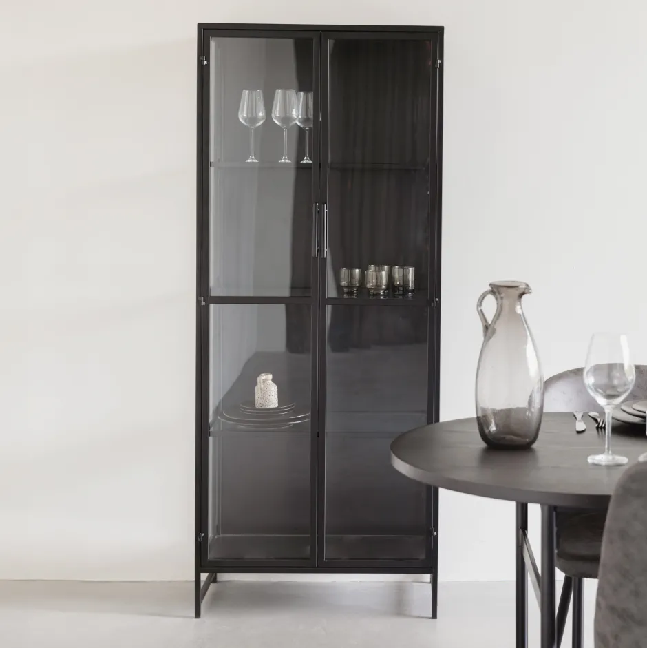 Hot ZILT Vitrinekast Reka Zwart metaal