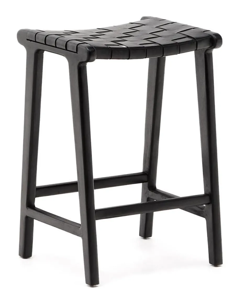 Kave Home Barkruk Calixta Hout en Leder (zithoogte 67cm)