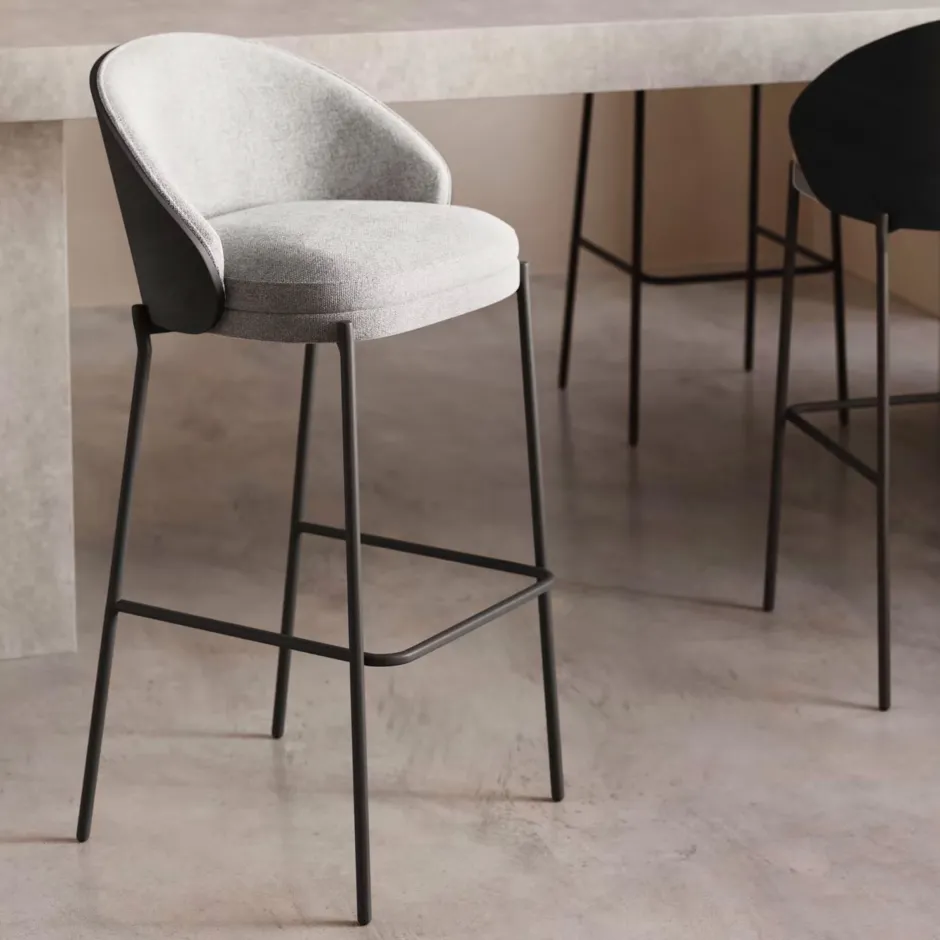 Kun jij niet kiezen tussen verschillende materialen en vind je een barkruk met een stoffen ziting net zo mooi als een houten variant? Dan hebben we goed nieuws voor je. Barkruk ‘Eamy’ van Kave Home brengt deze twee materialen samen. De rondgevormde stoffen zitting biedt fijn comfort, terwijl de essenhouten rugleuning naast stevigheid ook een prachtige look geeft. Het derde materiaal vind je terug in het onderstel dat van metaal is gemaakt.