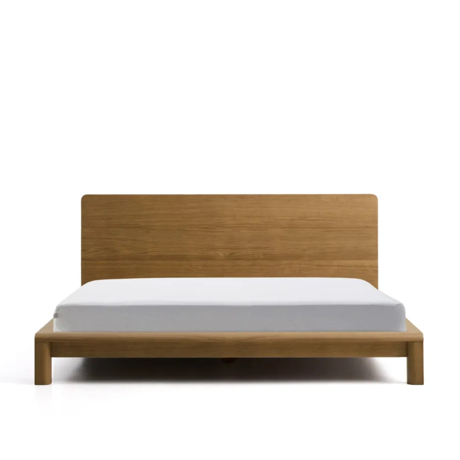 - Bed van fineer en massief eikenhout met lichtbruine afwerking voor een matras van 160 x 200 cm.