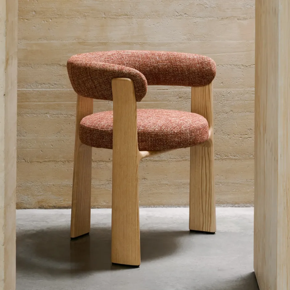 Kave Home Eetkamerstoel Granite Chenille en naturel essenhout