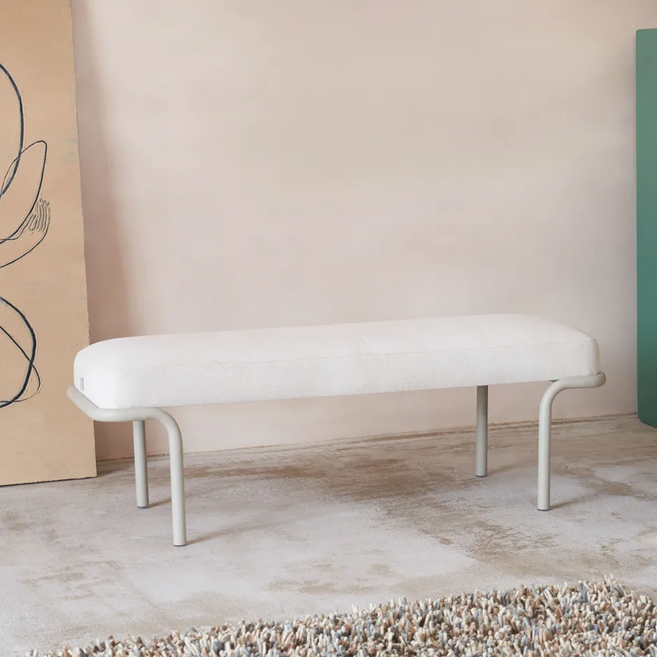 - De bank wordt geleverd met gestoffeerd kussen met kleine chenillestructuur in het beige.