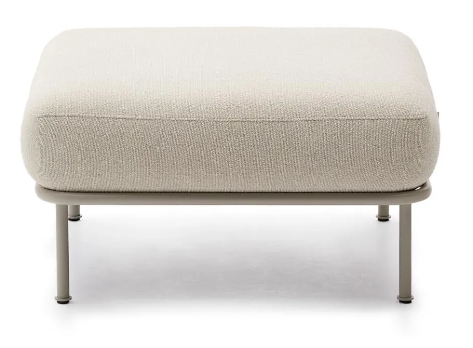 - Voetenbankje bekleed met ecru chenille met fijne structuur dat zacht aanvoelt. Metalen basis met matte microstructuur.