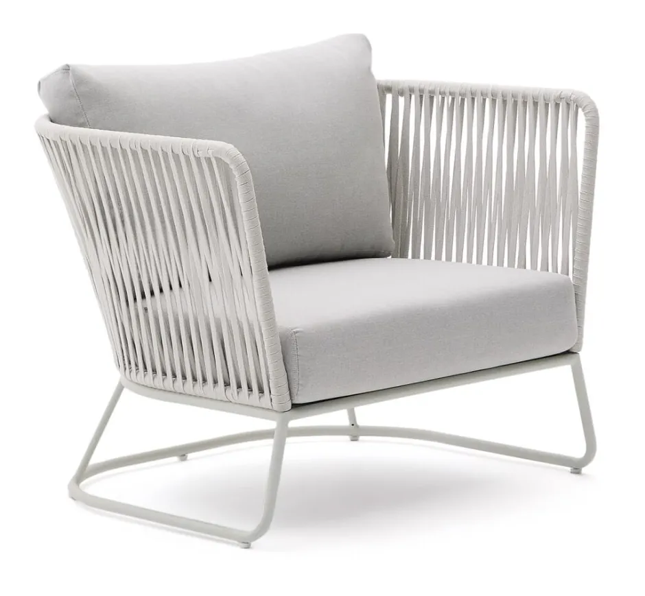 De Saconca collectie is ontworpen om dat veelzijdige en charmante element te worden dat in elke buitenruimte past en zich aanpast aan verschillende stijlen en behoeften. De gegalvaniseerde stalen structuur, bestand tegen roest, corrosie en UV-straling, zorgt voor een uitzonderlijke duurzaamheid. Het geweven touw op de armleuningen en rugleuning verzacht het uiterlijk en zorgt voor een perfecte balans tussen modern en gezellig. Discrete en elegante meubelstukken, ideaal voor minimalistische of Scandinavische ruimtes. Het lichte en luchtige ontwerp bevordert het gevoel van ruimtelijkheid, waardoor het harmonie brengt op terrassen, in tuinen of zelfs in lichte interieurs. Bovendien zijn de kussens met afneembare hoezen, die we aanraden op te bergen op regenachtige dagen, het laatste detail van comfort dat deze meubelstukken de perfecte zitplaats maakt om buiten te ontspannen. Ontworpen voor 100% buitengebruik, nodigen ze uit om op elk moment van het jaar van het buitenleven te genieten, zonder u zorgen te hoeven maken over slijtage of intensief onderhoud.