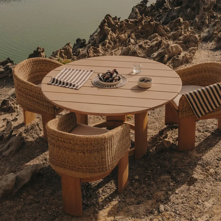 In de Xoriguer-collectie draait het allemaal om ruimtelijkheid, comfort en design. Dankzij het ontwerp in massief eucalyptushout en de afgeronde lijnen is het de perfecte bijzettafel voor binnen en buiten. Bovendien geeft de bijzettafel elke ruimte een trendy gevoel.