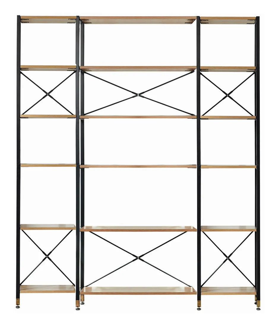 Nu komt er orde in de chaos. Met deze wandplankenset creëer je extra opbergruimte en is ruimtegebrek geen probleem meer. Met een hoogte van 210 cm biedt de wandplankenset je genoeg ruimte voor bijvoorbeeld boeken of decoratieve spullen. Terwijl het stevige frame van metaal is, zijn de planken en laden gemaakt van MDF met een acacia decor. Dankzij de open indeling van de staande plank kun je hem ook gebruiken als roomdivider.
