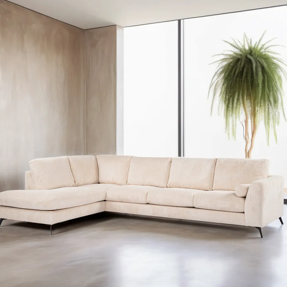New BASE 3-zits Hoekbank Joetta Links, Rib, kleur Beige