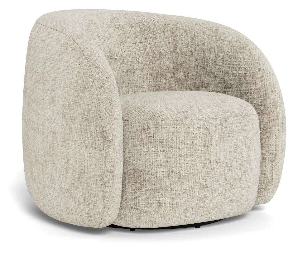 Deze beige 1-zitter doet een beroep op de zintuigen door zijn organische en artistieke uitdrukking en is een fascinerend statement. De zacht gebogen rug omarmt de zitting, zodat je je kunt hullen in het gewatteerde comfort. De zachte stof met een levendig, gestructureerd oppervlak vult de volumineuze vorm aan, terwijl de zwarte draaivoet een soepele beweging mogelijk maakt.