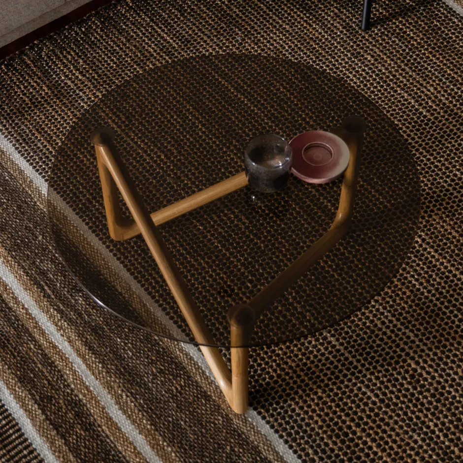 Als je op zoek bent naar een bijzonder meubel om de zithoek meer karakter te geven, zit je goed met de Dutchbone Naia. Deze salon- of bijzettafel is geïnspireerd op de golvende beweging van de zee. Dat zie je goed terug in de organische vormen van het onderstel. Het eikenhout met natuurlijke of walnootkleurige beits, geeft bovendien veel warmte af. Dit zorgt in combinatie met het ronde, glazen tafelblad voor een sfeervolle en tikkeltje retro look, die niet zou misstaan in een seventies interieur. Perfect voor het creëren van een intieme setting om samen met vrienden of familie – a place to warm your soul.