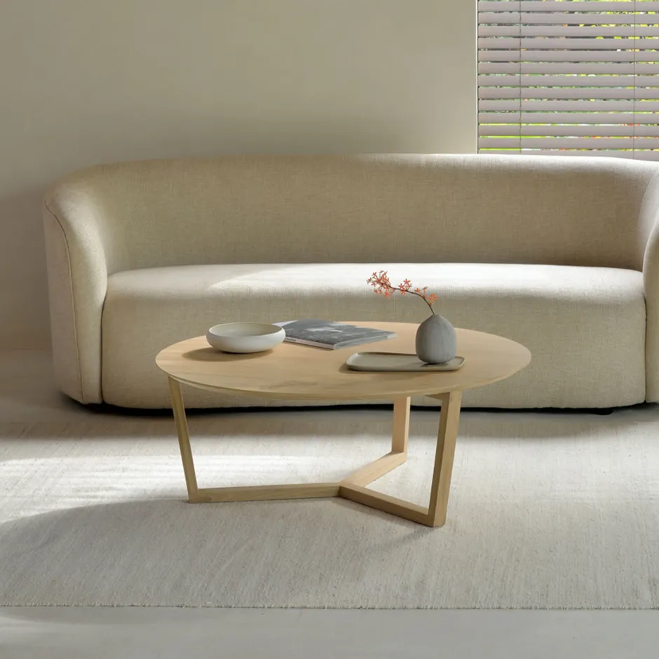 New Ethnicraft Ronde Salontafel Tripod Gevernist Eikenhout, 96cm