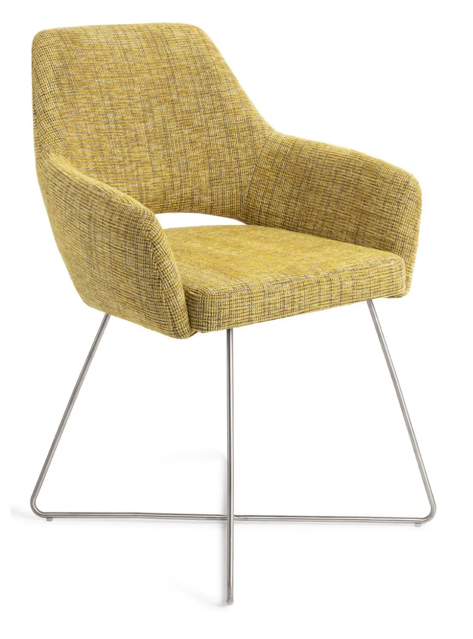 De Yanai eetkamerstoel is een goed voorbeeld van tijdloos design. De strakke lijnen op de rugleuning combineren prachtig met de ronde lijnen in de inkeping. De zitting is bekleed met een hoogwaardige polyester stof. De grove weving van de stof geeft de stoel een speelse uitstraling, maar is ook erg duurzaam. Je kunt kiezen uit verschillende kleuren, welke fijn matchen met elkaar maar ook met andere kleuren in jouw interieur.