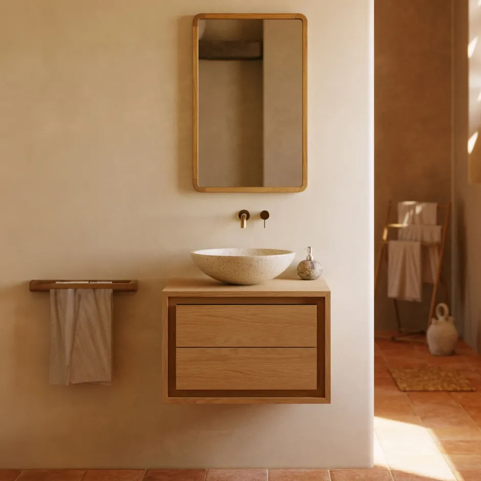 De Kenta collectie is gemaakt van vochtbestendig massief teakhout zodat u kunt ontspannen in een oosterse design spa zonder uw huis te verlaten. Laat zien dat je badkamer ook stijlvol is.