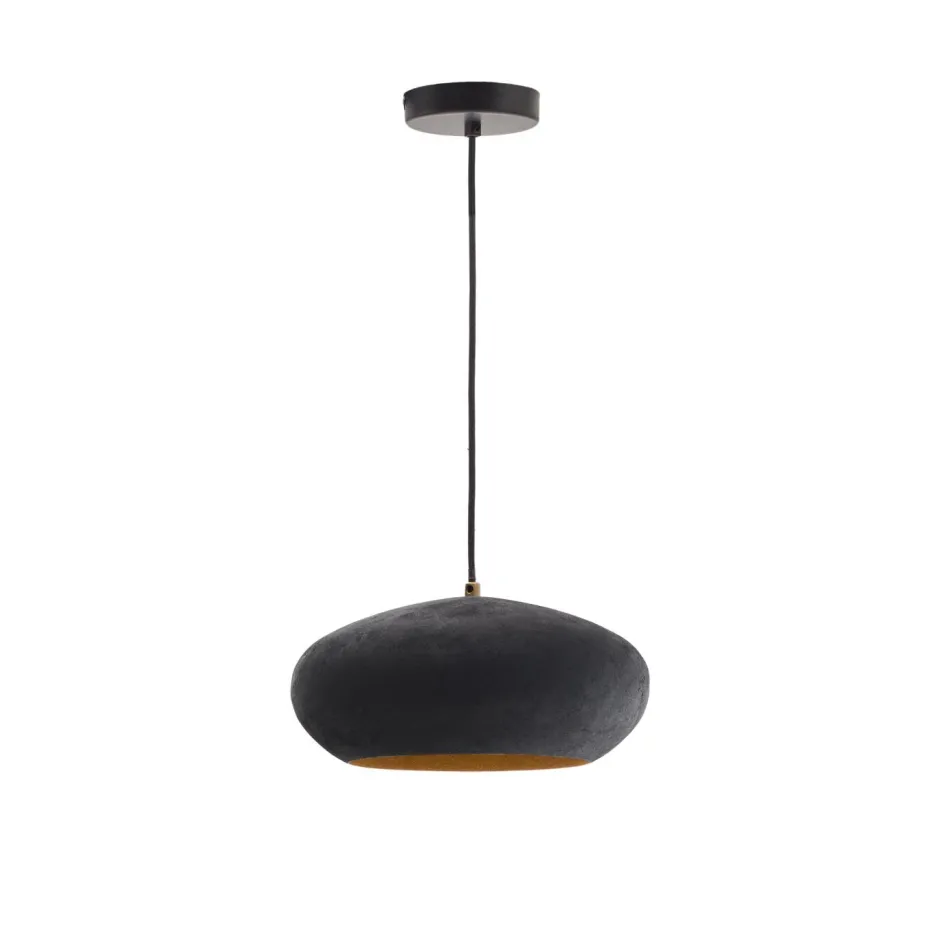 - Plafondlamp van metaal met een witte terracotta-achtige afwerking.