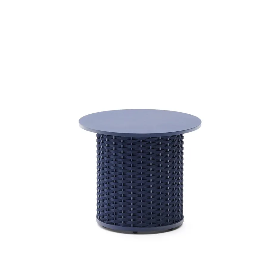 - Salontafel van aluminium en handgeweven onderstel van UV-bestendig touw, versterkt met een stalen voet om het geheel te stabiliseren.