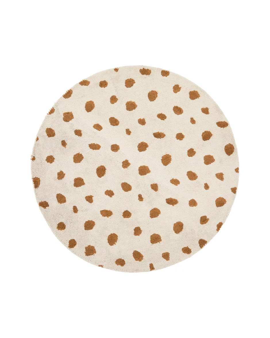 - Rond tapijt van beige katoen met jachtluipaard-design.