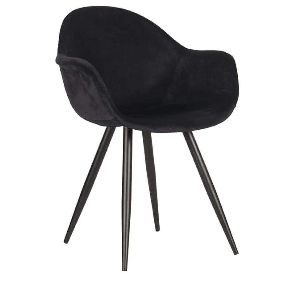 Eetkamerstoel Forli, uitgevoerd in grijs kleurig fluweel heeft een zeer luxe en comfortabele kuip voorzien van elegante rondingen en armleuningen. De prachtige duurzame basis als kuip gestoffeerd met het mooiste fluweel zorgt voor een comfortabele, stevige zit. Forli is in het bezit van licht uitlopende poten, uitgevoerd in zwart metaal, waardoor de stoel stevig op de grond staat en ook nog eens een leuke speelse touch krijgt.