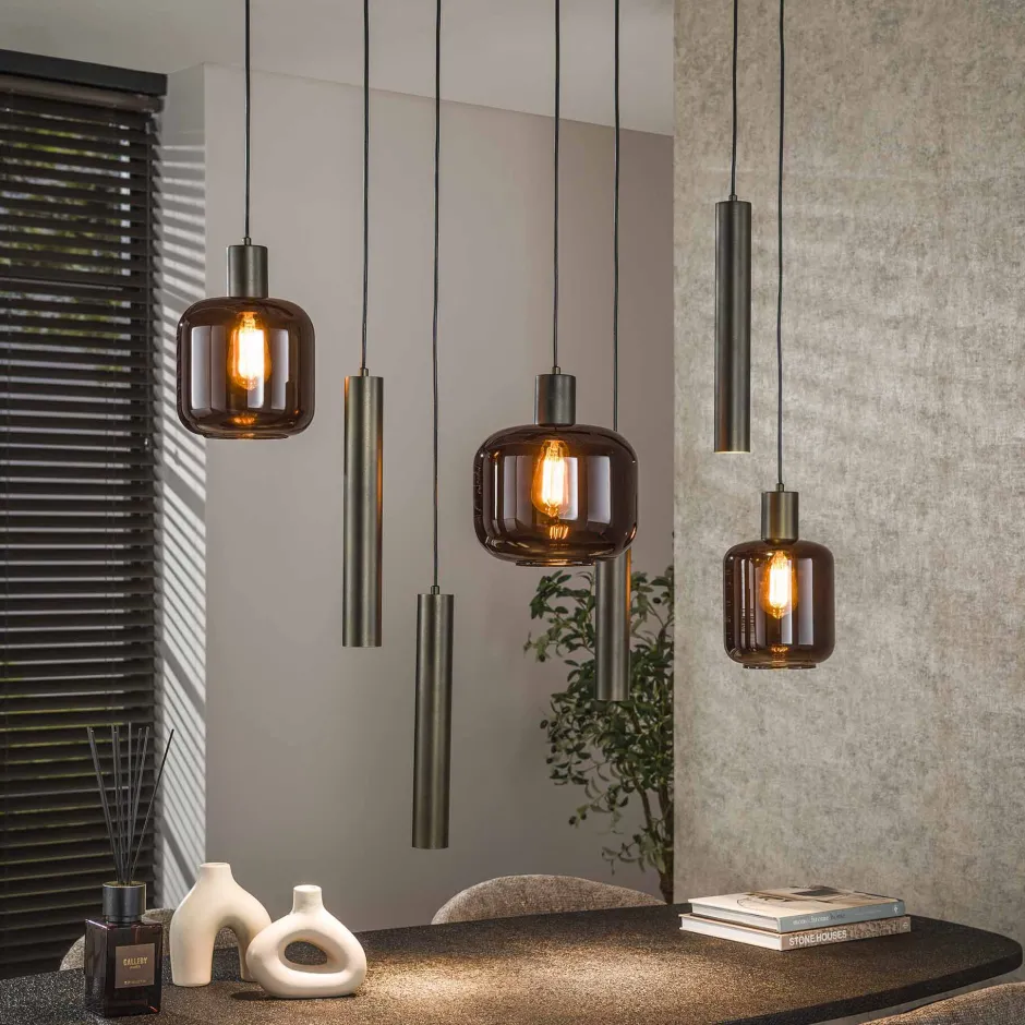 New LifestyleFurn Hanglamp Gill 4+3-lamps, kleur Sienna brown