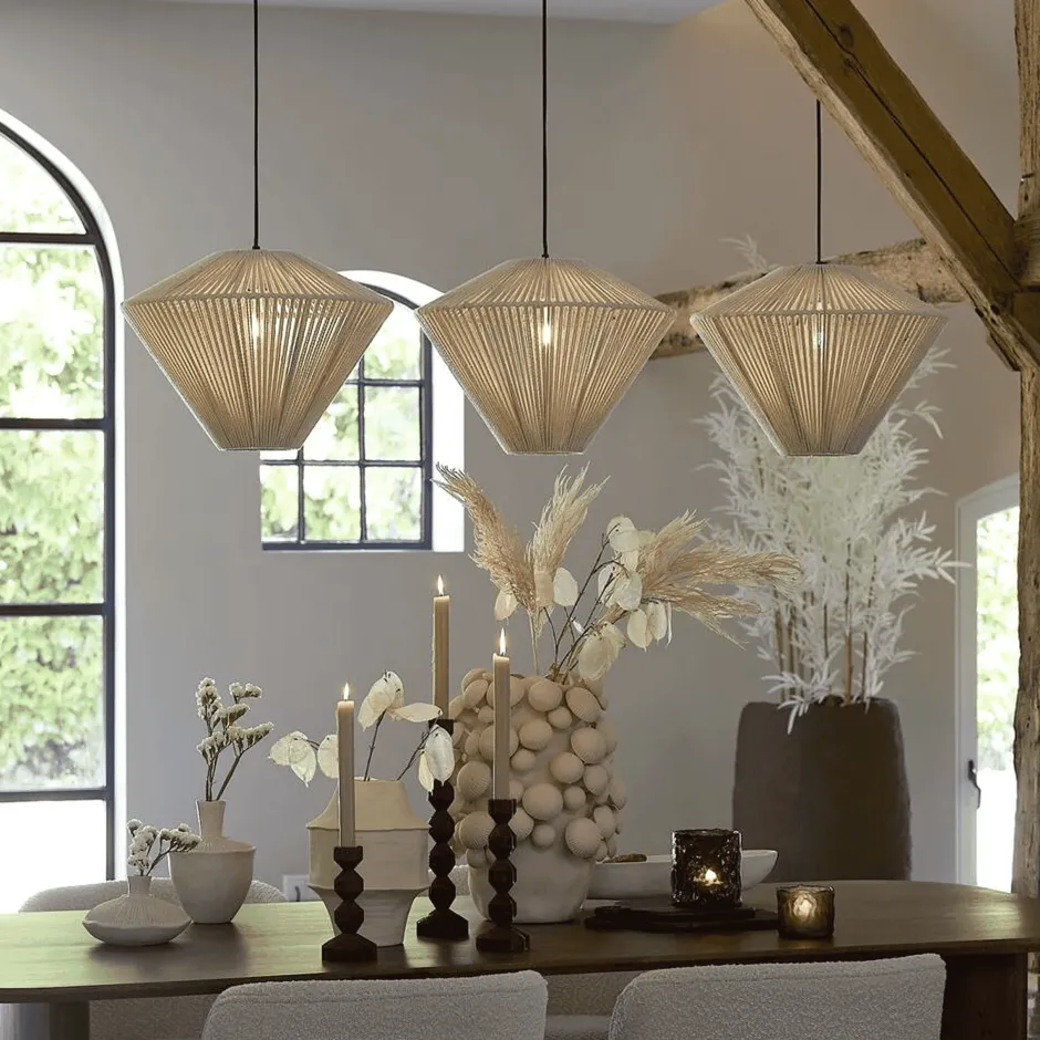 De Felida hanglamp is een stijlvolle toevoeging aan elk interieur. Uitgevoerd in een zachte crèmekleur, straalt deze lamp elegantie en rust uit. De drie glazen kappen hangen op verschillende hoogtes, wat zorgt voor een speels lichteffect. De warme gloed van het licht maakt deze lamp perfect voor boven de eettafel of in een gezellige zithoek. Door het minimalistische ontwerp past de Felida moeiteloos in diverse interieurstijlen, van modern tot klassiek.