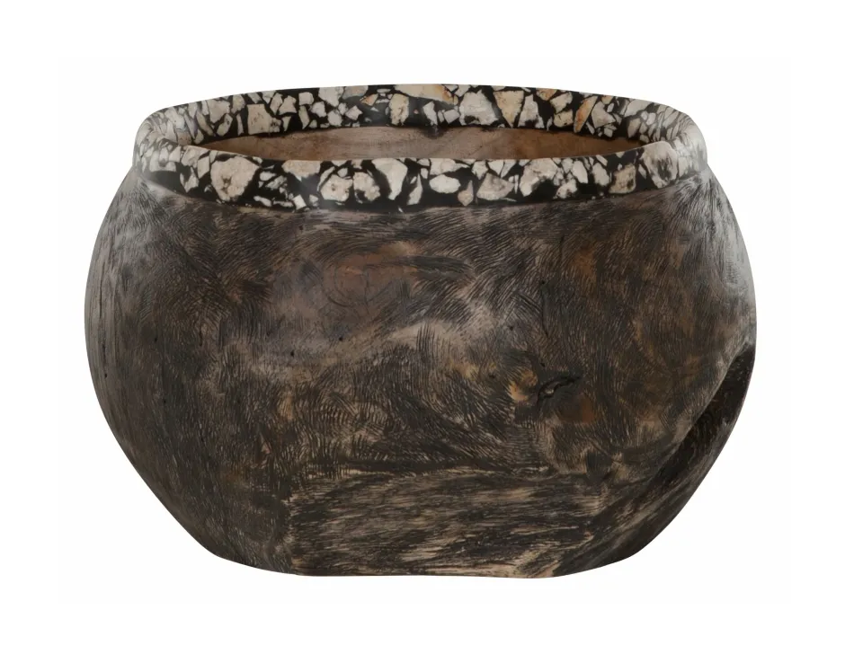 Pot Coral is gemaakt van teakhout en heeft een zwarte kleur met een naturel glans. De schaal heeft een afmeting van 16xØ26 cm.