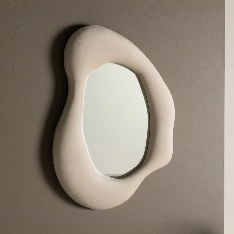 De fluweelzachte rand voegt warmte toe en maakt de spiegel een subtiele eyecatcher aan de wand. Lake combineert Scandinavische eenvoud met een teder, stijlvol detail dat elke ruimte net dat beetje extra geeft.