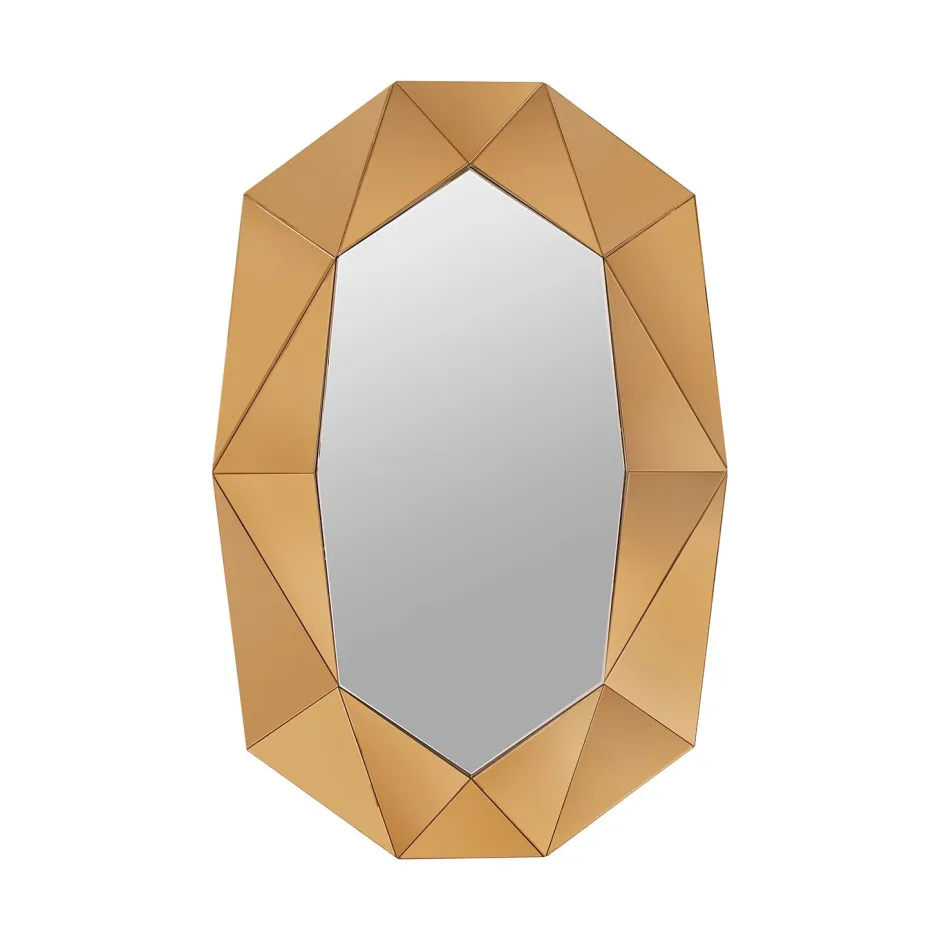 De spiegel Jaloe is een opvallend decoratief element dat moeiteloos stijl en functie combineert. Met zijn unieke, geometrische ontwerp en goudkleurige omlijsting trekt Jaloe direct de aandacht en voegt een vleugje luxe toe aan elke ruimte. De facetten van het frame creëren een interessant spel van licht en schaduw, wat deze spiegel niet alleen praktisch, maar ook een kunstzinnig accent maakt in je interieur. Jaloe is perfect voor wie op zoek is naar een spiegel die zowel functioneel is als een sterk visueel statement maakt, ideaal voor gebruik in de hal, woonkamer of slaapkamer.
