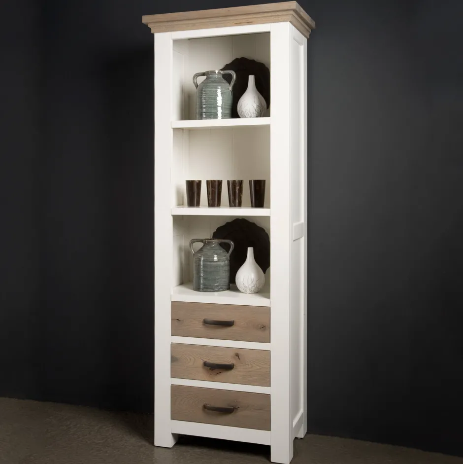 De Boekenkast Parma van Tower Living combineert landelijke charme met moderne eenvoud. De kast is opgebouwd uit rustiek eiken en grenen: de eikendelen zijn licht geborsteld en geolied, terwijl het witte grenen frame subtiel is opgeschuurd voor een zacht verweerd effect. Deze kast wordt volledig afgemonteerd geleverd en heeft een royale maat die toch luchtig oogt. Drie laden en meerdere open planken geven ruimte om boeken, decoraties of verzamelingen stijlvol te presenteren. Met Parma haal je een sfeervolle blikvanger in huis die warmte en tijdloze allure uitstraalt.