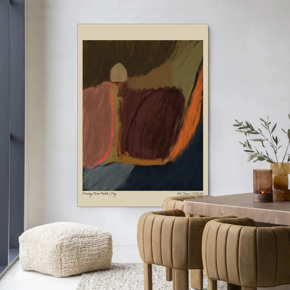 New Urban Cotton Wandkleed Dreamy Farmfield By Night in maat en frame naar keuze