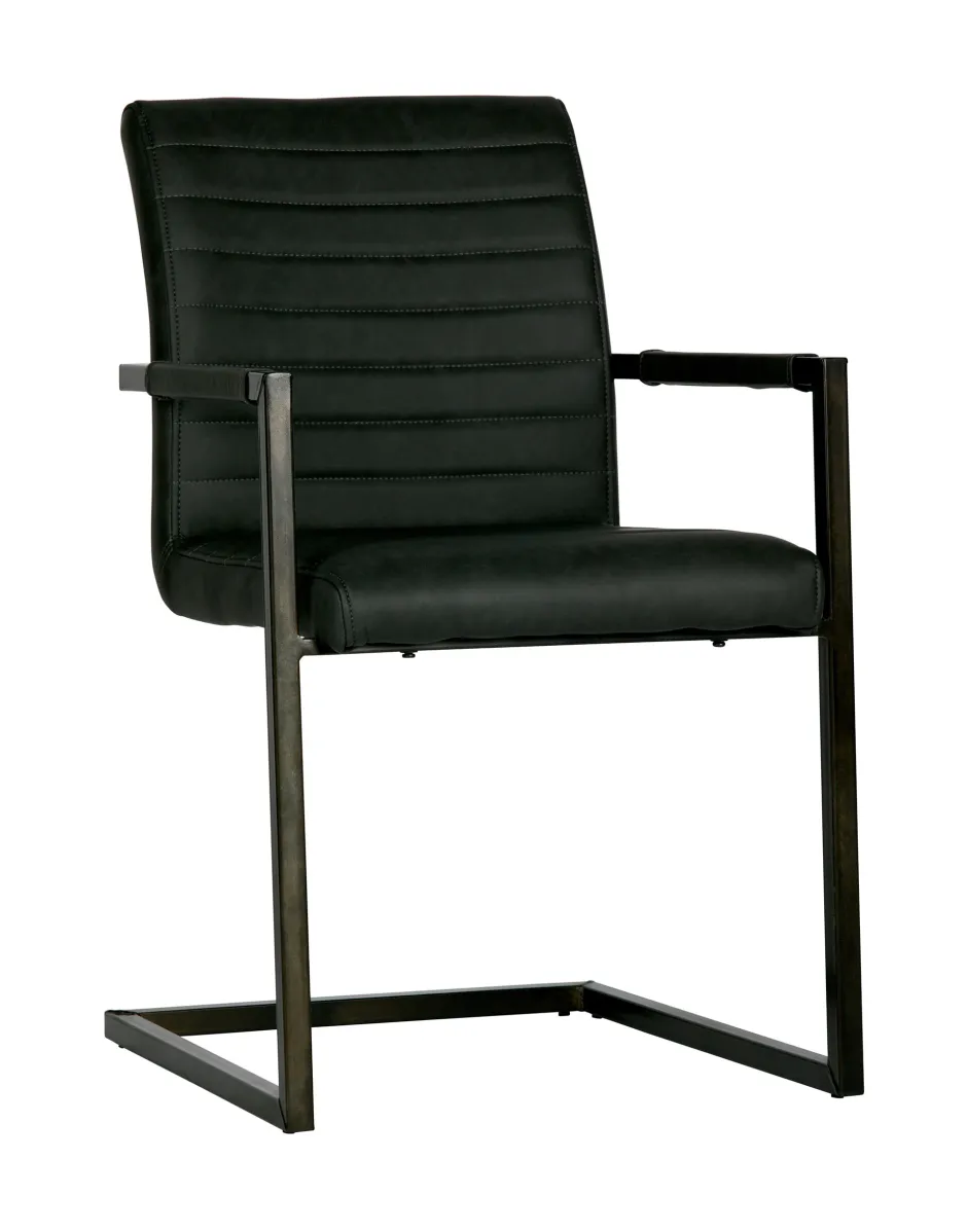 Het frame van de stoel is van metaal en afgewerkt met een zwarte poedercoating. De foam in de zitting is Polyurethaan schuim (normaal schuim) met een dikte van 25 kg/m3. De rugleuning heeft een dikte van ditzelfde foam in 21 kg/m3. De zitting is bekleed met een PU leren stof met vintage look.
