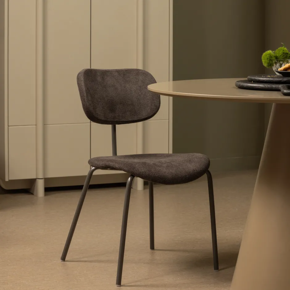 Stijlvol in zijn eenvoud, dat is onze Link eetkamerstoel. De eetkamerstoel uit de Exclusive collectie van het Nederlandse interieurmerk WOOOD heeft een slank metalen onderstel, gecoat in een bruin/grijze kleur. De zitting is bekleed met een matglanzende, zachte ribstof met een opvallend kronkelend banenpatroon. Extra leuk:de stoel is stapelbaar!