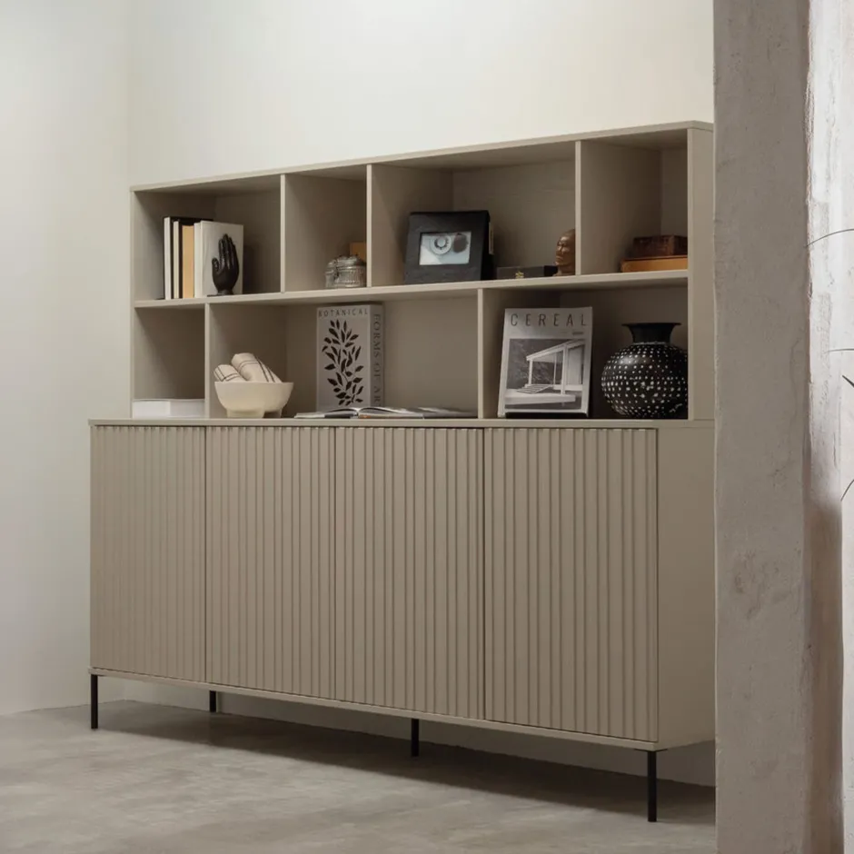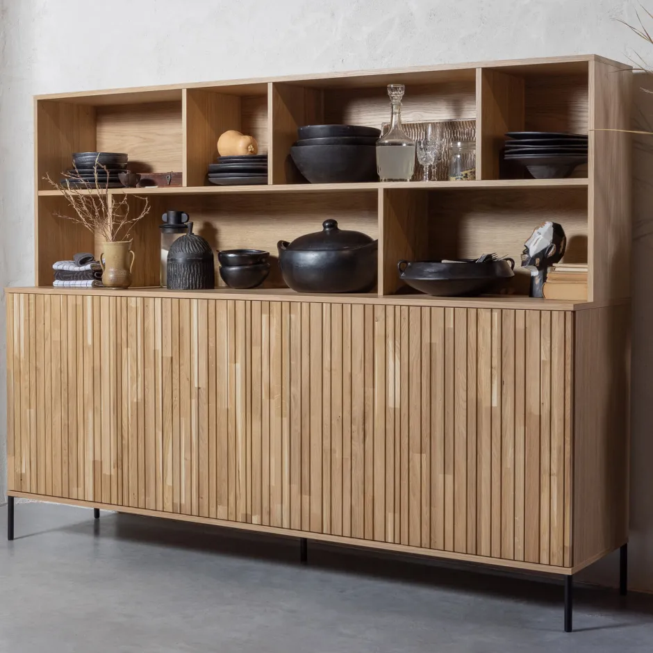 Combineer je meerdere New Gravures naast elkaar? Verbind beide meubels dan eenvoudig met enkel één poot voor en één poot achter, stijlvol! De wandkast wordt in meerdere pakketten geleverd en is eenvoudig te monteren aan de hand van de bijleverde montagehandleiding. Plaats voor het beschermen van harde vloeren viltglijders onder de poten van de New Gravure kasten.