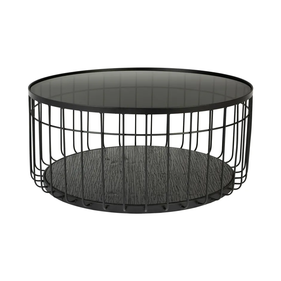 | Materiaal: | Gepoedercoat ijzeren frame, glazen blad en MDF fineren dennenhouten onderstel |