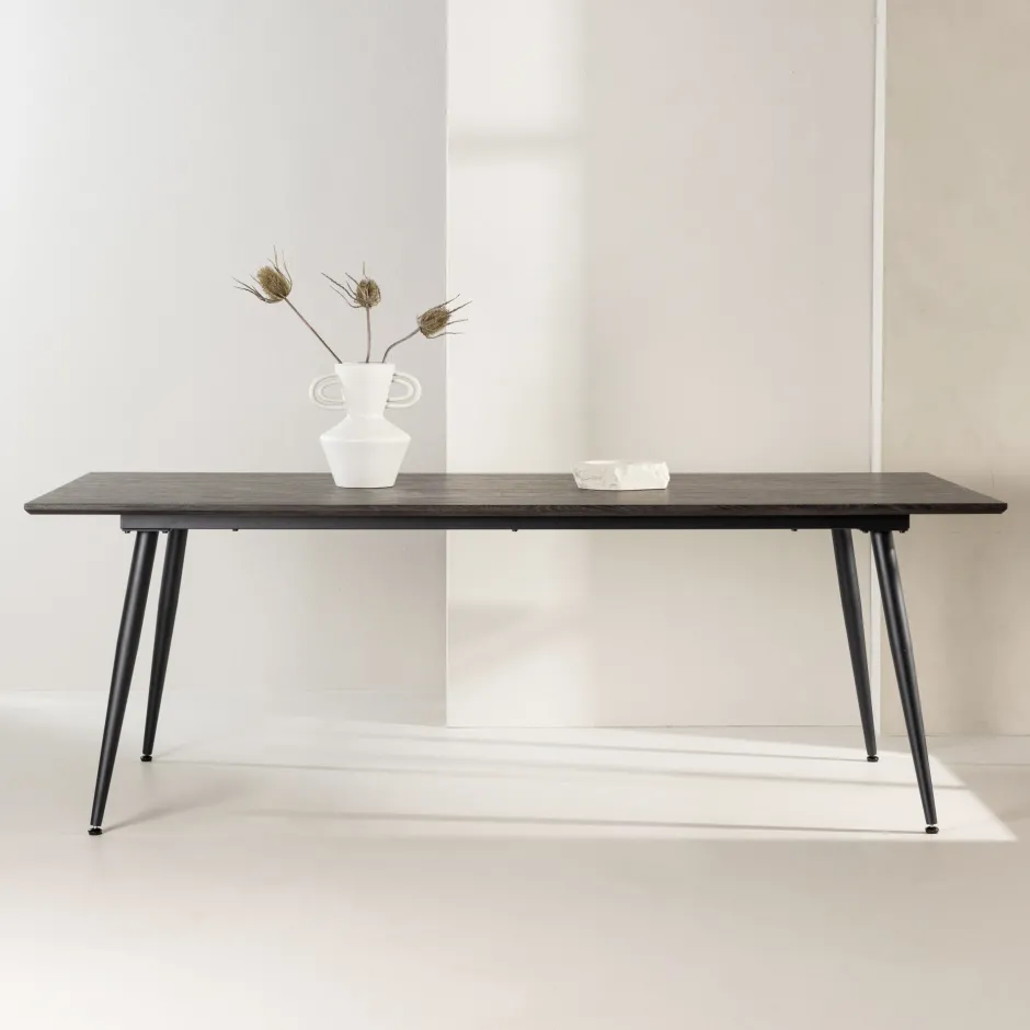 Ben je op zoek naar een eettafel die zowel stijl als functionaliteit combineert? Dan is de Jolean eettafel de perfecte keuze voor jou. Met zijn ruime tafelblad van 220×100 cm biedt deze eettafel veel ruimte voor je maaltijden en sociale bijeenkomsten. De Jolean eettafel heeft een elegant rechthoekig ontwerp dat perfect past in een moderne inrichting. Het bruine MDF tafelblad zorgt voor een warme en uitnodigende uitstraling, terwijl de zwarte stalen poten de tafel een modern tintje geven. Of je de Jolean eettafel nu gebruikt als plek voor familiediners, als kantoor aan huis, of als centraal punt voor een gezellig samenzijn met vrienden en familie, deze tafel zal een geliefd onderdeel van je huis worden. Het tijdloze ontwerp en de hoogwaardige materialen maken het een meubelstuk dat je vele jaren zal vergezellen. Met de Jolean eettafel kun je een uitnodigende sfeer creëren en genieten van kostbare momenten met je dierbaren. Maak van je huis het perfecte middelpunt met deze praktische en elegante eettafel. Bestel je Jolean eettafel vandaag nog en laat je inrichting stralen!