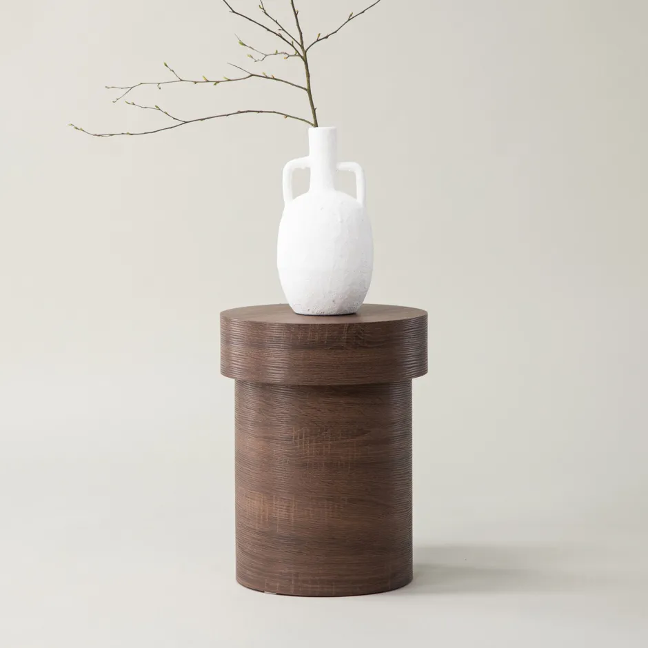 Het product is FSC® gecertificeerd (FSC®C177288), wat betekent dat het gemaakt is van hout dat afkomstig is uit verantwoorde bosbouw die rekening houdt met mens en milieu. Maak kennis met Tazia – de stijlvolle bijzettafel die je interieur naar een nieuw niveau van moderne elegantie tilt. Met een diameter van 35 cm en een hoogte van 45 cm past deze bijzettafel perfect naast je favoriete fauteuil of bank om een praktische en stijlvolle opbergoplossing te bieden.