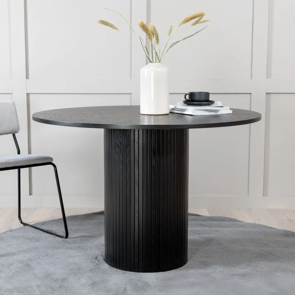 Creëer een prachtige gemeenschap rond onze ronde eettafel Fionna in modebewust ontwerp! Het tafelblad is gemaakt van MDF en heeft een cilindervormig frame in robuust ontwerp en geribbeld design. De consequent gepleisterde witte kleur is even tijdloos als stijlvol en gemakkelijk te combineren met andere inrichtingen. Verhoog het decorgevoel en laat de tijd een van de hoogtepunten van vandaag worden!