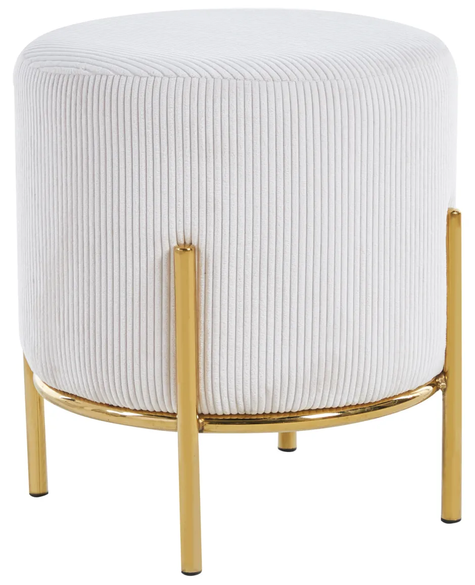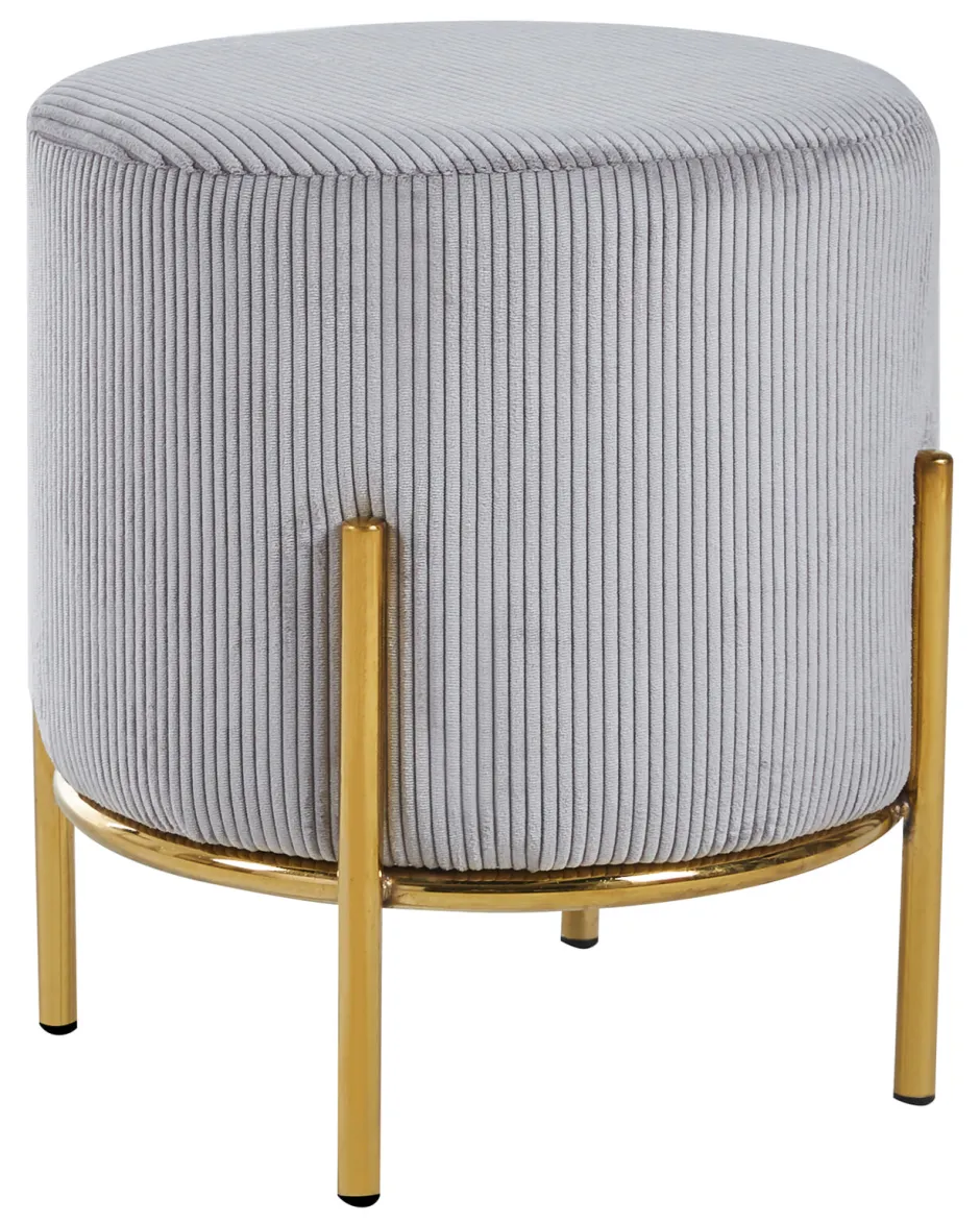 Als er spontane gasten komen, is extra zitruimte altijd een welkome zegen. Als dit er ook nog eens stijlvol uitziet en ruimtebesparend werkt, dan heb je een ideale designgenoot voor bank en zithoek. De kruk in ribfluweellook met een diameter van de zitting van 35 cm biedt precies deze combinatie van aantrekkelijk uiterlijk en functioneel gebruik. Hier kun je extra gasten op laten zitten of je voeten opleggen in volledige ontspanning. De zachte corduroy stof geeft de kruk een moderne uitstraling en de karakteristieke naden zorgen voor een interessante verschijning. Het design frame met hoge poten is gemaakt van goudkleurig metaal en maakt de look helemaal af.