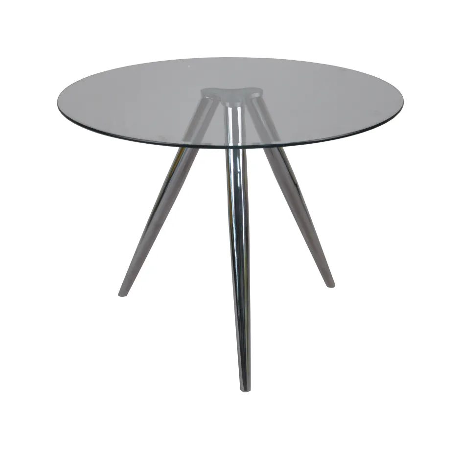 Het nieuwe middelpunt in je eethoek. Het ronde tafelblad is gemaakt van glas. Met een diameter van 100 cm biedt hij voldoende ruimte voor maximaal 4 personen. Het blad van helder glas heeft een dikte van 10 mm en is zeer stabiel. De drie conische tafelpoten zijn verchroomd en geven de tafel een zeer goede stabiliteit. Het moderne uiterlijk van deze tafel maakt hem geschikt voor bijna elk interieur. Waar je deze tafel ook gebruikt, eetkamer of bistro, het is meer dan een plek om te zitten en te eten. Hier kun je uitgebreide gesprekken voeren met vrienden of familie.