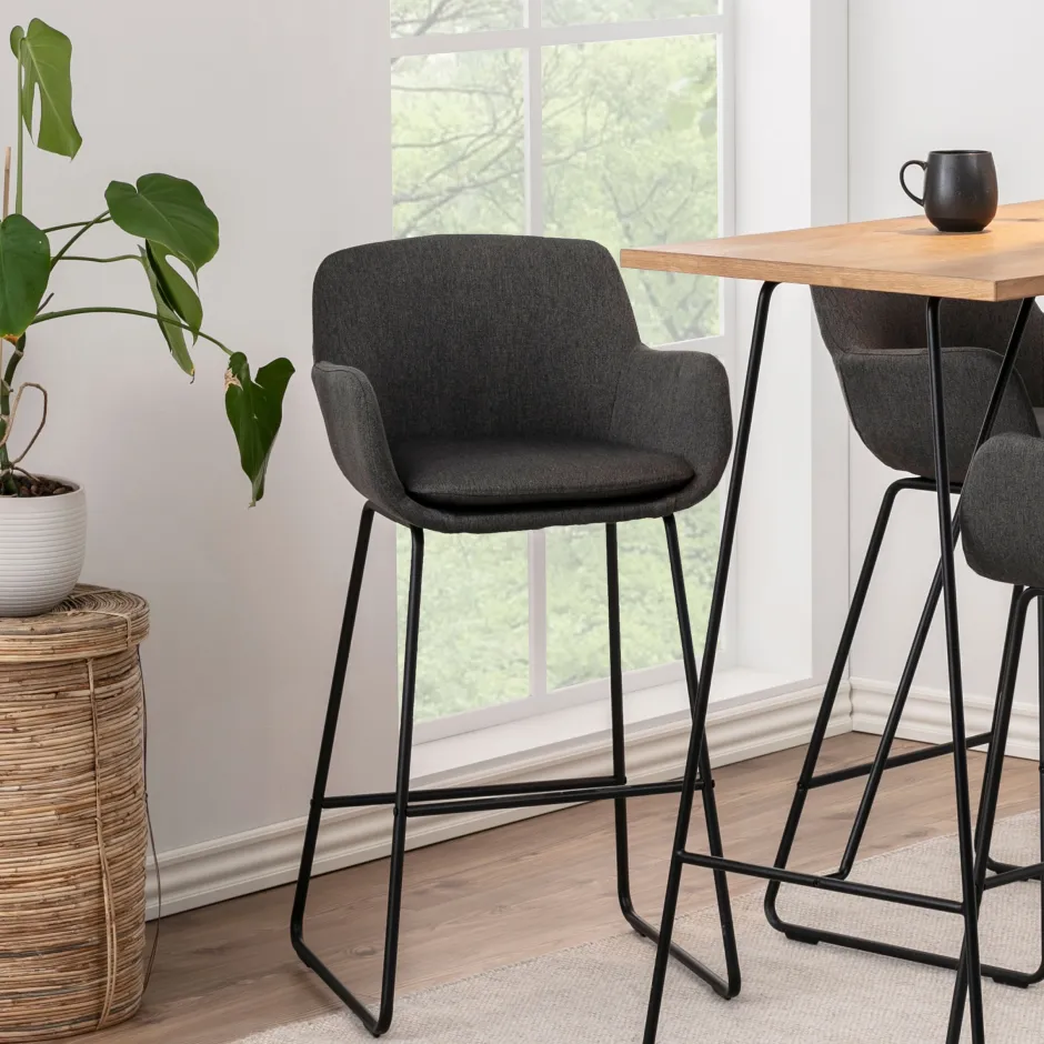 Barkruk die je comfortabel houdt en er mooi uitziet? Ja op beide. Met een zitting die zo breed en uitnodigend is, kun je er een paar uur in tot rust komen. De lounge-geïnspireerde zitting is goed gestoffeerd en wordt geleverd met armleuningen en voetsteun, zodat je lichaam wat rust krijgt, terwijl het slanke sledeonderstel de stoel een moderne uitdrukking geeft.