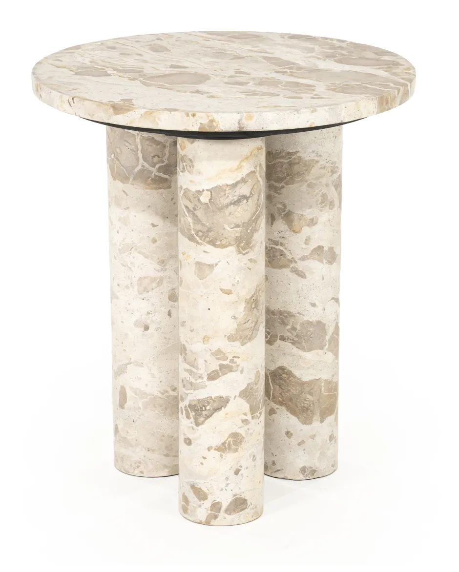 Online By-Boo Ronde Bijzettafel Marmo Marmer, 40cm Beige