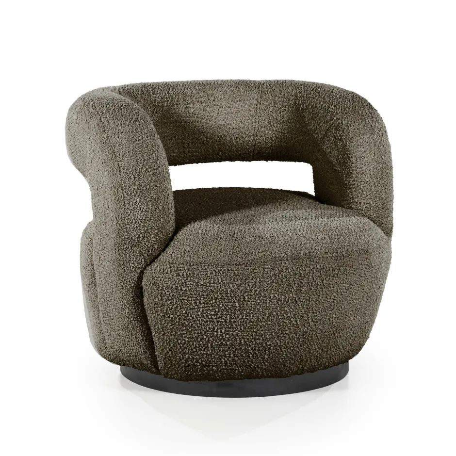 Fauteuil ‘Sharon’ uit de collectie van Eleonora zit verdraaid goed. Deze prachtige stoel is bekleed met een trendy bouclé stof en heeft een ronde rugleuning. Hierdoor wordt je omarmt door de fauteuil en kun je urenlang blijven zitten. De opening in de rugleuning geeft een luchtige look aan de stoel, waardoor deze eigenlijk in elke ruimte wel past.
