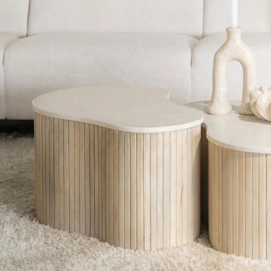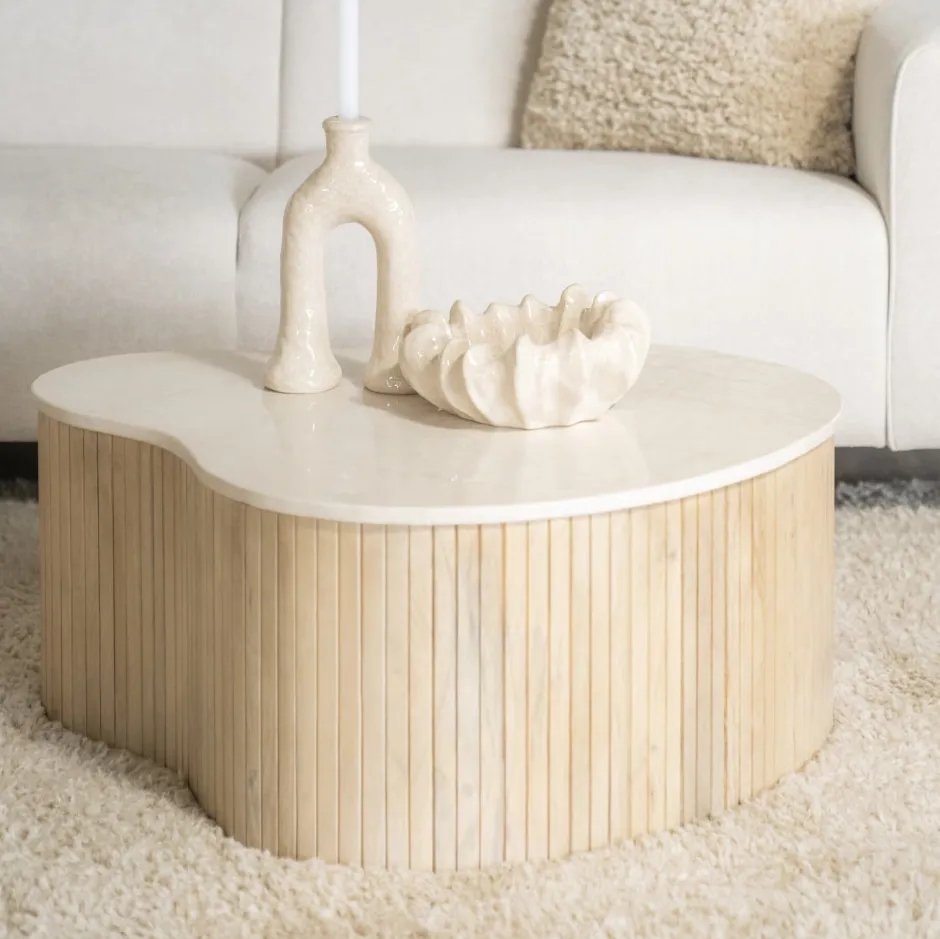 Online Eleonora Organische Salontafel Kira Mangohout en marmer (per stuk) Wit