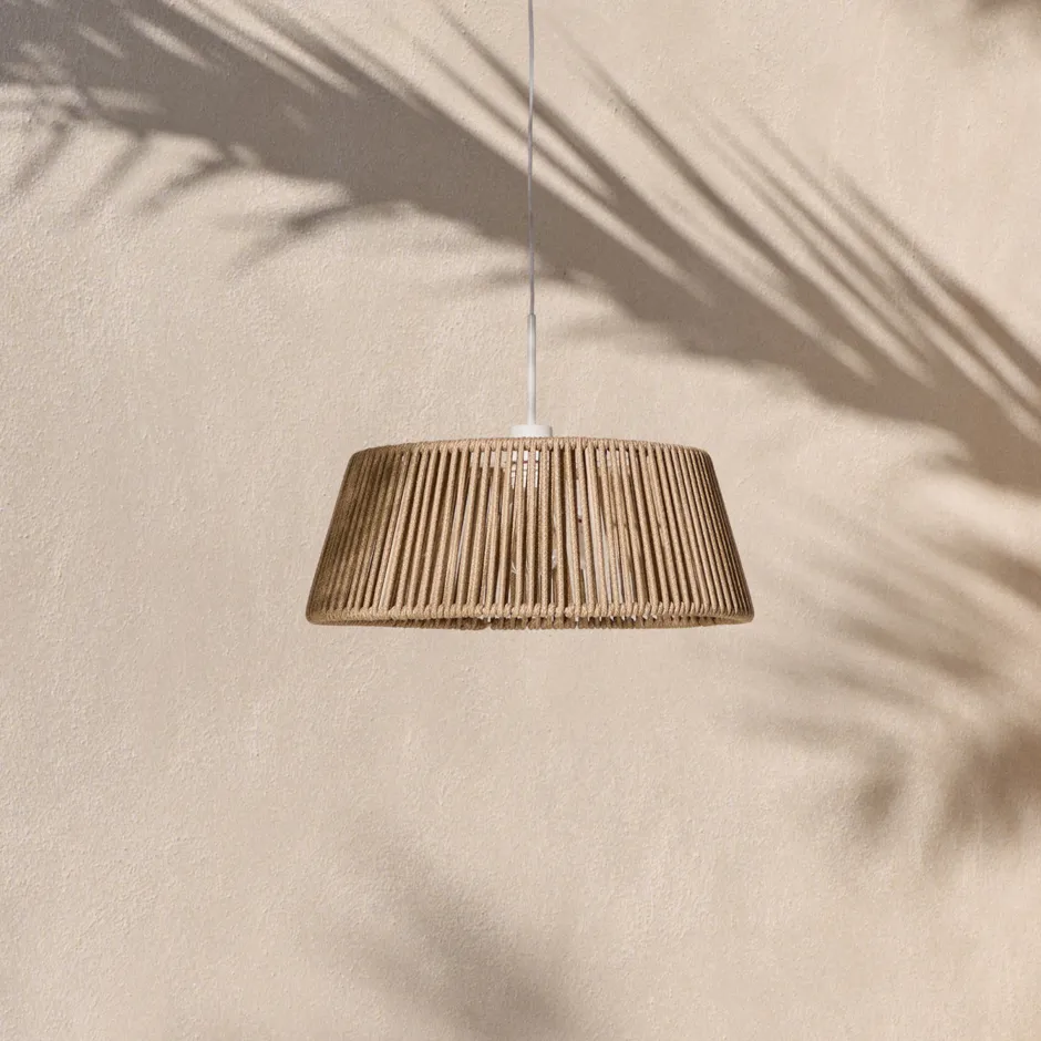 Deze lampenkap valt op door het geweven touwontwerp, dat een unieke textuur geeft aan elke buitenruimte. Deze lampenkap is ideaal voor het creëren van een warme en gezellige sfeer en combineert stijl en functionaliteit, waardoor terrassen en tuinen omgetoverd worden tot charmante hoekjes. De lampenkap is compatibel met de Fulvia, Kaede en Albir plafondlampen, waardoor het een veelzijdige optie is om aan te passen aan verschillende stijlen. De lamp is ook verkrijgbaar in verschillende kleuren, zodat u uw keuze kunt aanpassen aan uw inrichting. De bestendigheid tegen de buitenelementen zorgt voor een optimale duurzaamheid en biedt elegante en betrouwbare verlichting voor buitenruimtes die op zoek zijn naar een opvallend tintje.