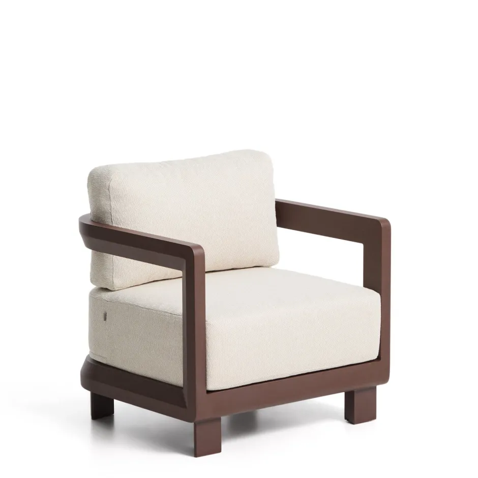 De Nerano-collectie is ontworpen voor binnen- en buitenruimtes. De aluminium structuur is licht en sterk en behoudt zijn kleur en vorm en is bestand tegen oxidatie, corrosie en blootstelling aan de zon. De kussens hebben afneembare hoezen en zijn gemakkelijk te verwijderen, en kunnen gemakkelijk worden opgeborgen als ze niet worden gebruikt of op regenachtige dagen. Het meubel bevat bovendien plastic beschermers om de vloer te beschermen en het oppervlak na verloop van tijd in goede staat te houden.