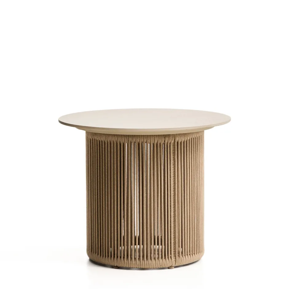 De Orosei bijzettafel combineert lichtheid en kracht in een meubel dat is ontworpen om in rust van het buitenleven te genieten. De aluminium structuur biedt bestendigheid zonder in te leveren op een verzorgde esthetiek en het onderstel van handgevlochten touw in ecru voegt textuur en warmte toe aan het geheel. Het gevlochten touw is behandeld om blootstelling aan de zon te weerstaan en het uiterlijk na verloop van tijd te behouden. Met de hoogteverstellers aan de onderkant van de poten kun je de stabiliteit op oneffen oppervlakken aanpassen. Je kunt hem combineren met de salontafel uit dezelfde collectie om een set te creëren die bij je buitenruimte past.